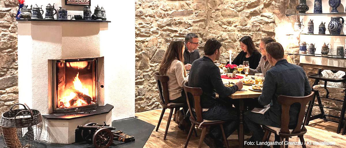 Ob für Familienfeiern, Geschäftsessen oder festliche Anlässe – hier speisen Sie in einem geschmackvoll eingerichteten und historischem Ambiente mit Kaminfeuer in der kalten Jahreszeit.